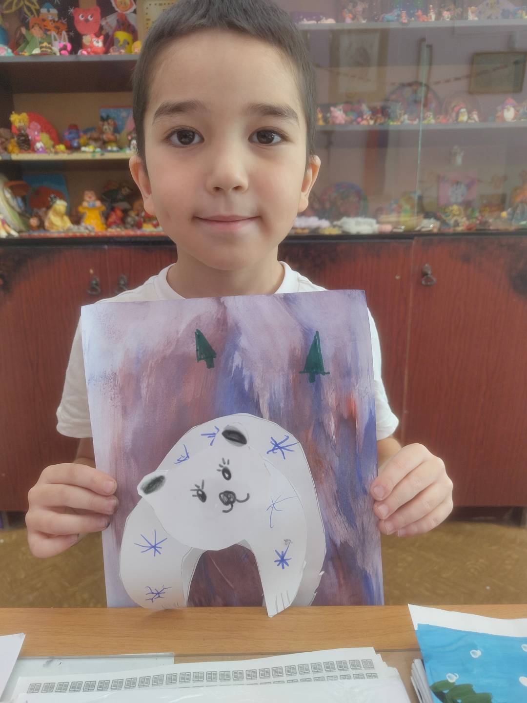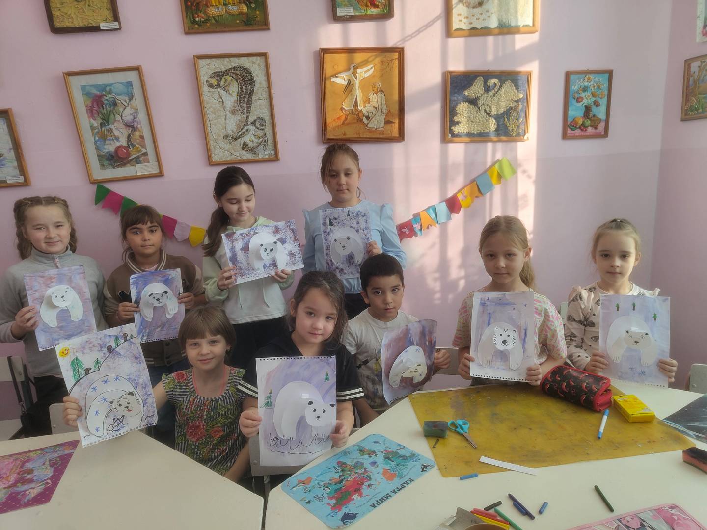 Во время творческого занятия ребята узнали много интересных фактов о белом медведе. Ведь это животное является настоящим символом бескрайних снежных просторов и лютых морозов, мужественности и стойкости.